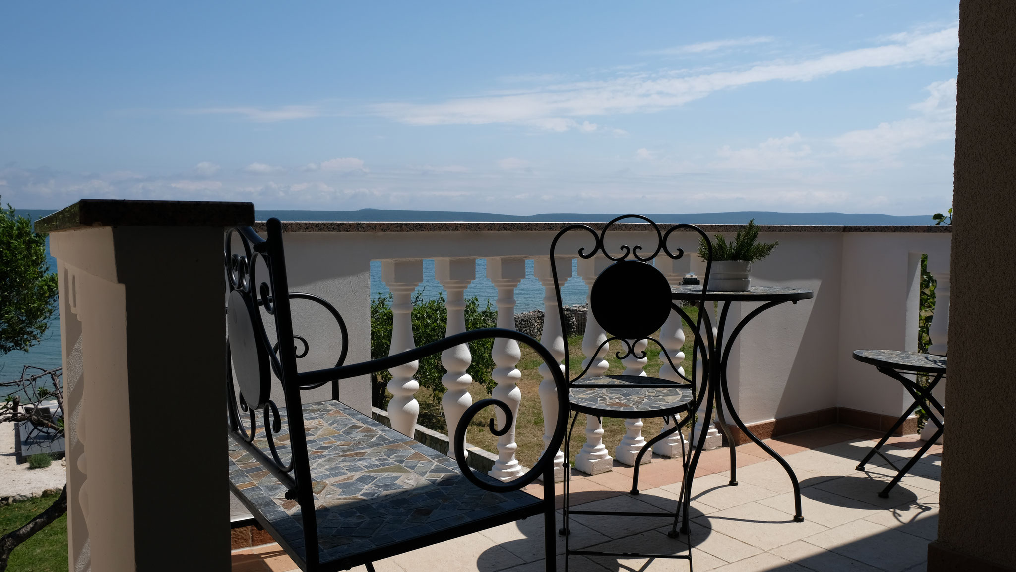 Das Haus bietet unseren Gästen die gesamte obere Etage, ca. 70 m², mit separatem Eingang, für euren Aufenthalt. Die Suite besteht aus einer überdachten Terrasse, welche ab Mittag Schatten bietet, einer Kaffee-Snack Küche für Erfrischungen, Badezimmer und Toilette, einem Schlafzimmer mit Meerblick und einem weiteren Masterschlafzimmer mit einer ca. 35 m² Sonnenterrasse.